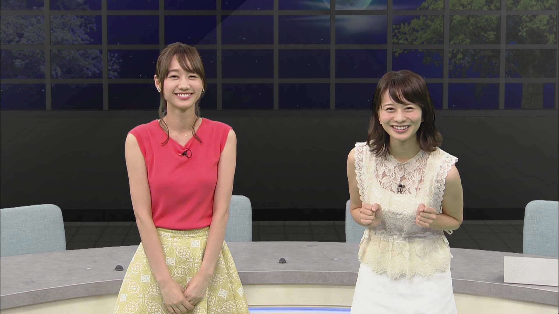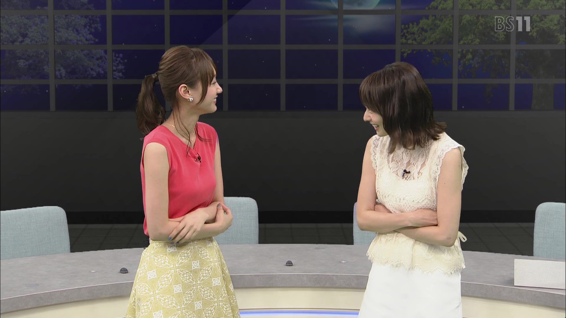 高見侑里アナと高田秋キャスター ノースリ & シースルー!